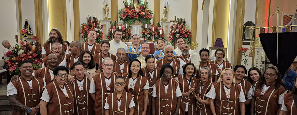 A Santa Missa do 3º dia da Novena em louvor a São Benedito foi presidida pelo padre Thiago Guimarães, da Paróquia do Puríssimo Coração de Maria, em Guaratinguetá (SP), e concelebrada pelos padres Paulinho e André Gustavo. A comunidade acolheu os devotos, os reis João Antônio Lourenço Barbosa e Cássia Maciel, com seus familiares, e os convidados da noite: as Irmandades de S. Benedito de Guaratinguetá e Aparecida, os Guardiões de S. Benedito de Aparecida com sua nova vestimenta, abençoada pelo padre André na celebração, representantes do Conisb (Conselho Nacional das Irmandades de São Benedito do Brasil), e os reis da festa de Guaratinguetá.