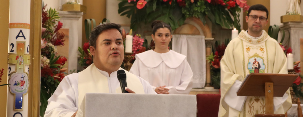 O grande dia chegou! Devotos de São Benedito reuniram-se na igreja matriz dedicada ao Santo para participarem do 1º dia da Novena, que teve como tema: “Com São Benedito, somos discípulos e peregrinos de esperança testemunhando a ressurreição”. Além dos devotos, participaram também a Irmandade e os Guardiões de São Benedito, os Reis das festas anteriores, os atuais Reis, João Antônio Lourenço Barbosa e Cássia Maciel, e seus familiares. A celebração foi presidida pelo pároco, padre André Gustavo, que rezou, por entre outras intenções, pelo bom êxito da Festa, e concelebrada pelo vigário paroquial, padre Paulo Roberto (Paulinho).