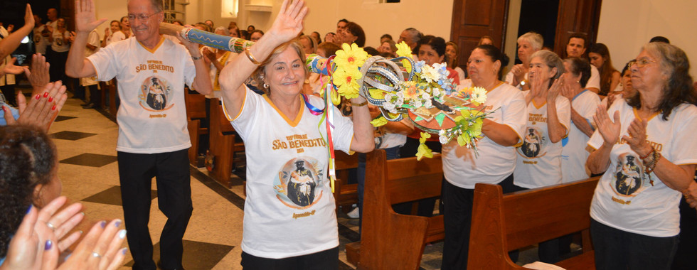Já no final da celebração, os coordenadores das trinta e oito comissões levaram até o altar uma bandeira com o nome da sua comissão e cantaram todos juntos o Hino de São Benedito. Veja esse momento no vídeo abaixo.
