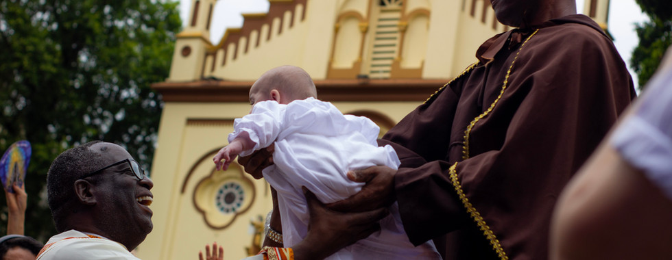 “Fomos muito bem educados numa cultura de desconstrução; seu corpo é feio, seu sorriso é escandaloso, sua pele é suja, e o que você acredita é diabólico. Mas aqui vemos o contrário. Cada um de vocês traz a sua expressão para dizer a Deus: ‘Obrigado, Senhor’, na festa de São Benedito, você está dizendo ‘não’. Esta peregrinação deve ser para nos fortalecer. Eu não estou só! É a paz que vai se estendendo. Nós somos filhos e filhas de Deus”, disse o padre Vanderlei Sousa, missionário redentorista, e presidente da celebração, durante a homilia. A missa foi concelebrada pelo pároco, padre André Gustavo, o vigário paroquial, padre Paulinho, padre Thiago Guimarães, da Paróquia Puríssimo Coração de Maria, padre Zezinho, de Belo Horizonte, e padre Renan, da Paróquia Santa Efigênia, de Nova Lima (MG).